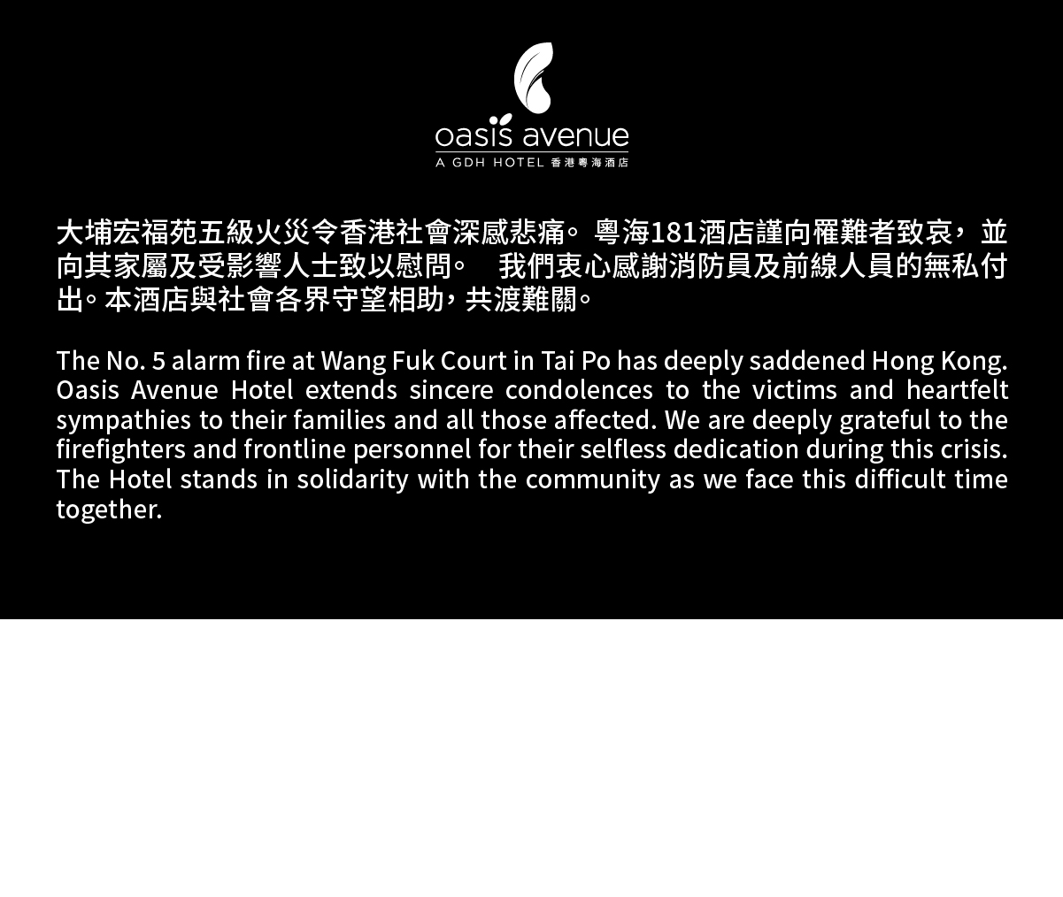As the first smart hotel in Hong Kong, Oasis Avenue is conveniently located in the thriving heart of Tsim Sha Tsui, just a 3-minute stroll from Tsim Sha Tsui MTR Station (Exit A2/D2) or East Tsim Sha Tsui MTR Station (Exit N2) providing a quick getaway to the rest of the city and a 40-minute drive to the Hong Kong International Airport.