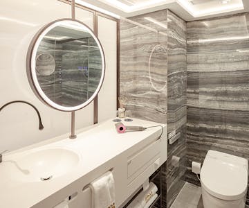 With the in-room iPad, guests can use voice commands or operate via the hotel app to control various room devices. Besides, the room is equipped with a 55 inches smart TV that can stream Netflix directly. Guests also can connect their own devices and mirror on the big screen. The bathroom is equipped with the intelligent toilet to ensure a comfortable stay.
