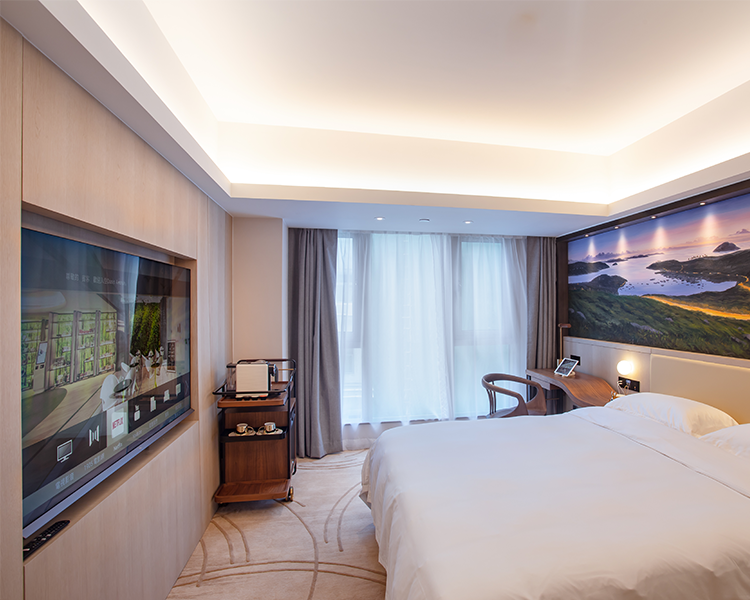 With the in-room iPad, guests can use voice commands or operate via the hotel app to control various room devices. When service is required, guests can readily get in touch with the staff through the iPad, mobile app or by pressing the ‘one-click call’ in the room. When delivery service is required, instead of a knock on the door, guests will be greeted by our Service Robot. It can operate elevators and navigate between floors, carrying out specific items to the desired room.