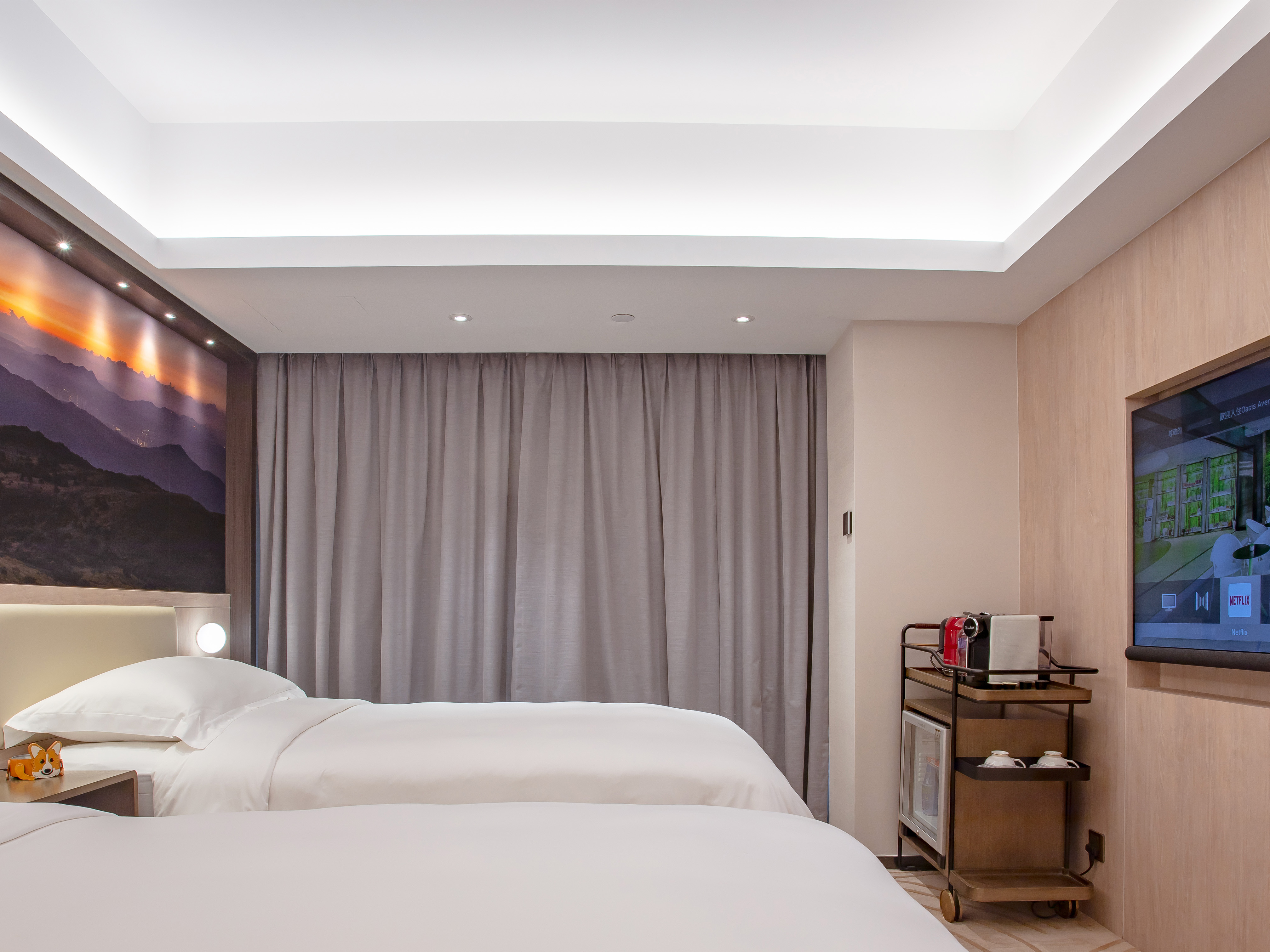 Smart Stylish Twin (190~210 sqft) comes with 2 Single Beds (100 x 200cm). Based on the theme ‘Meet Beautiful Hong Kong at Oasis Avenue’, the room showcases the unique landscape of Hong Kong.